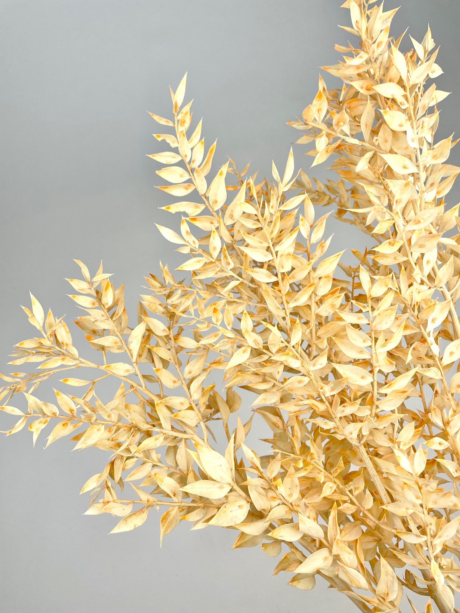 This preserved Ruscus in salmon pink painted and is beautifully branched and hard therefore extremely suitable for combining with other drying flowers. A bunch of Ruscus contains 5 branches.