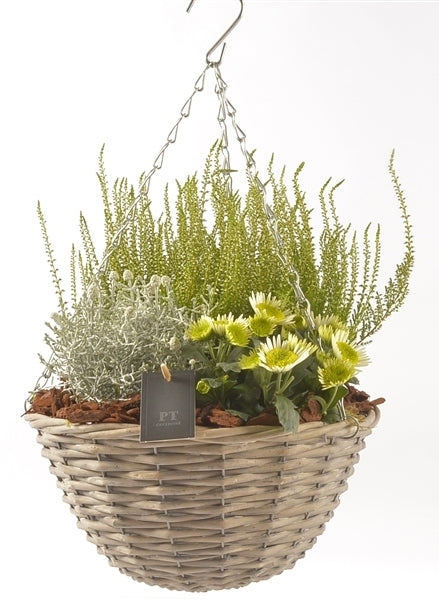 La taille du pot de ce panier suspendu est de 30 cm, la hauteur, y compris les plantes, est d'environ 20 cm.
